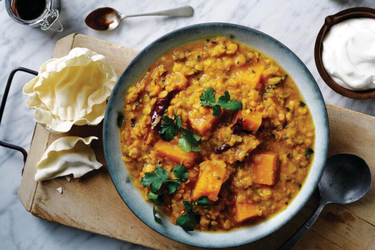 Pumpkin dal is a hearty, healthy and delicious Indian side dish made with lentils, pumpkin, spices and herbs. Make this easy pumpkin lentil dish on the stovetop or in the instant pot with my easy recipe. It is one of those dishes which don’t require much effort. All you do is just dump the ingredients in a pot and let them simmer until all the delicious flavors blend. Pumpkin dal can be served with plain steamed rice, quinoa, couscous, roti, paratha, chapati or any flat bread of your choice.